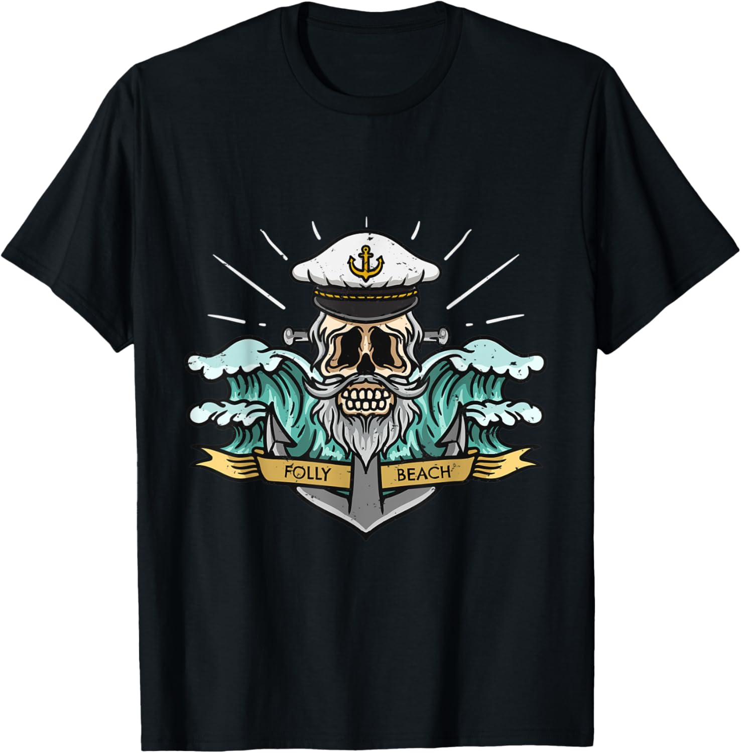 Folly Beach South Carolina Sea Captain Pirate Skull Nautical Men Women Kids