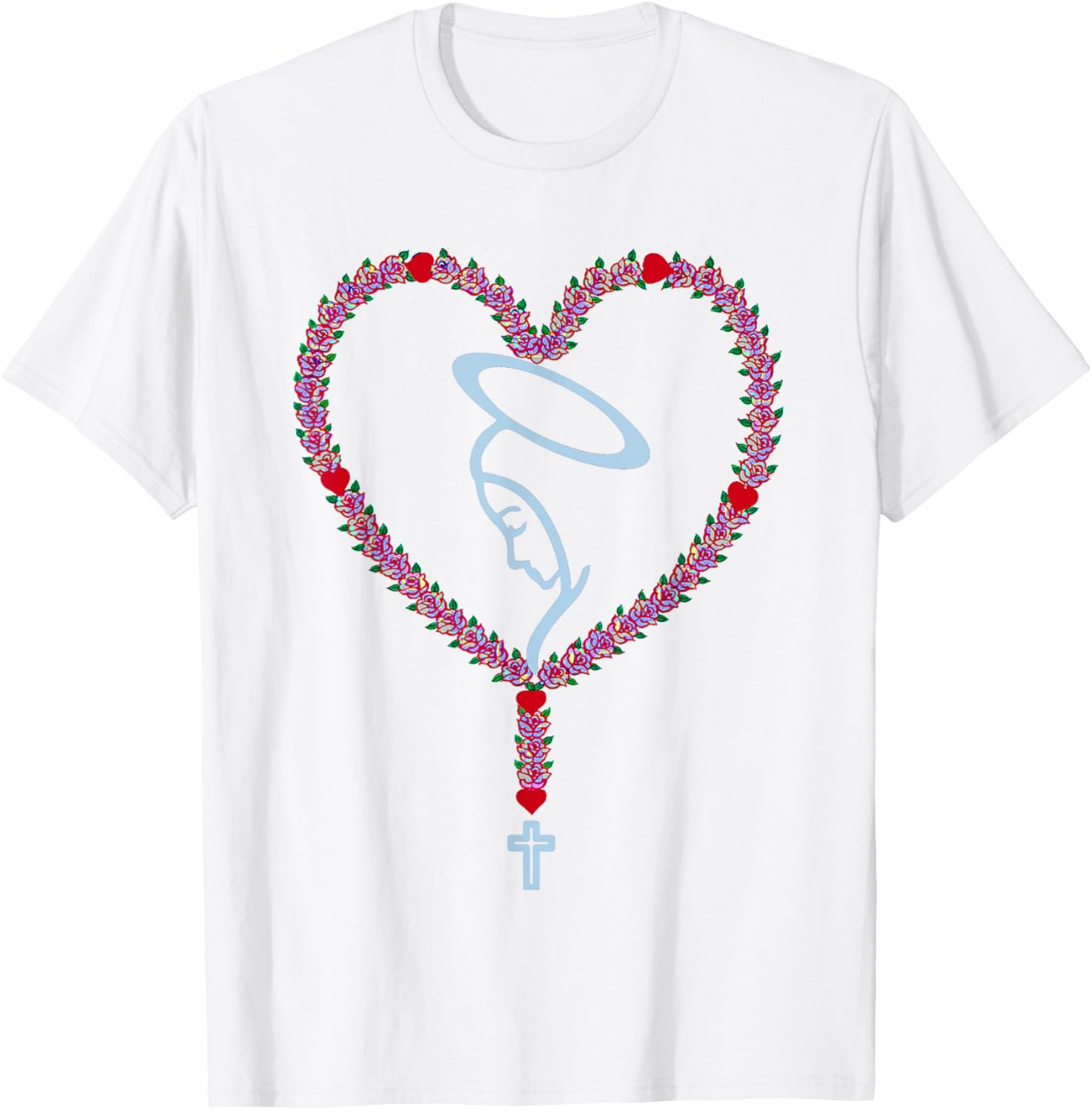 The Holy Rosary Roses Heart T-shirt Virgin Mary Catholics.